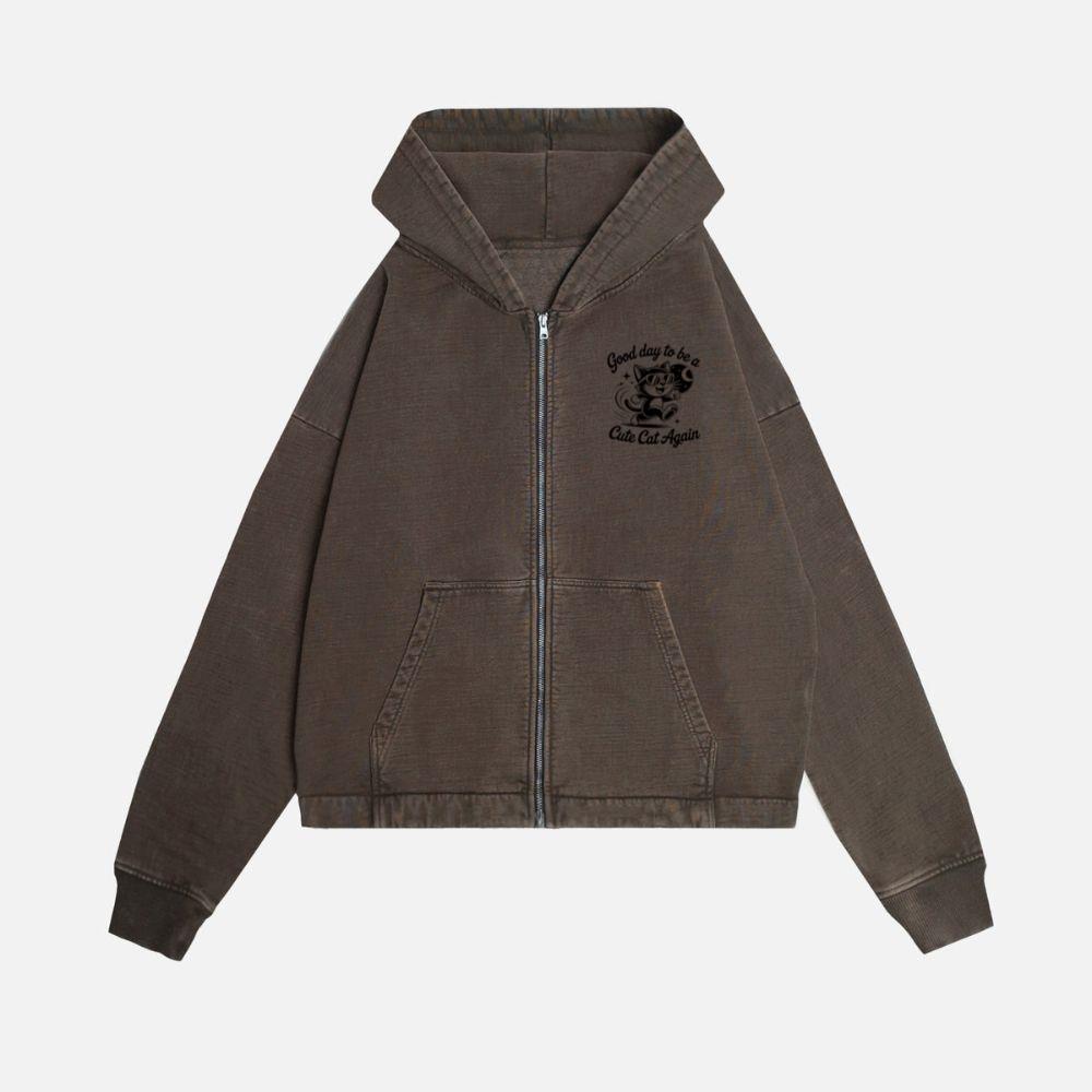 Cute Cat Again Retro Vintage Funny Graphic Zip Hoodie