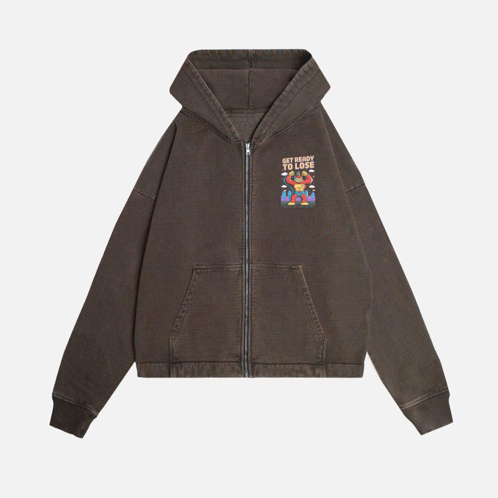 Get Ready to Lose Retro Robot Cartoon Design Zip Hoodie