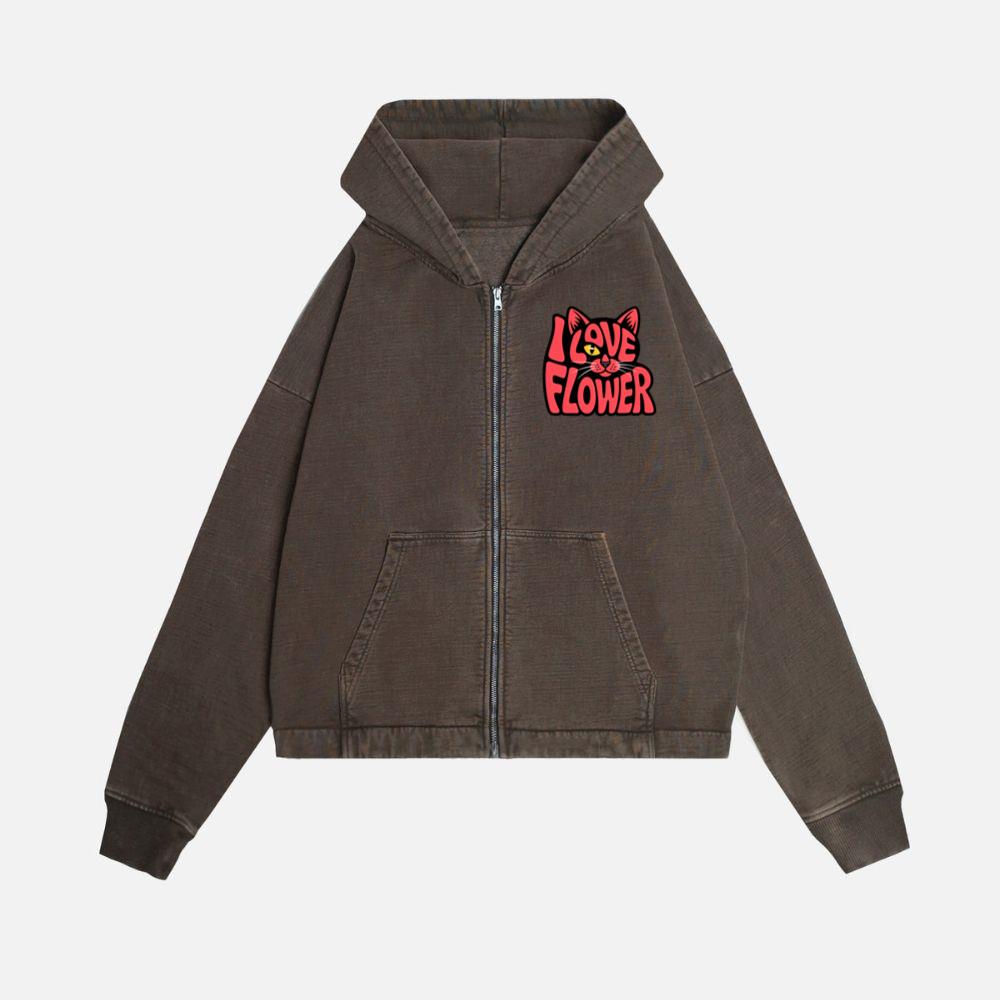 I Love Flower Cat Face Typography Graphic Design Zip Hoodie