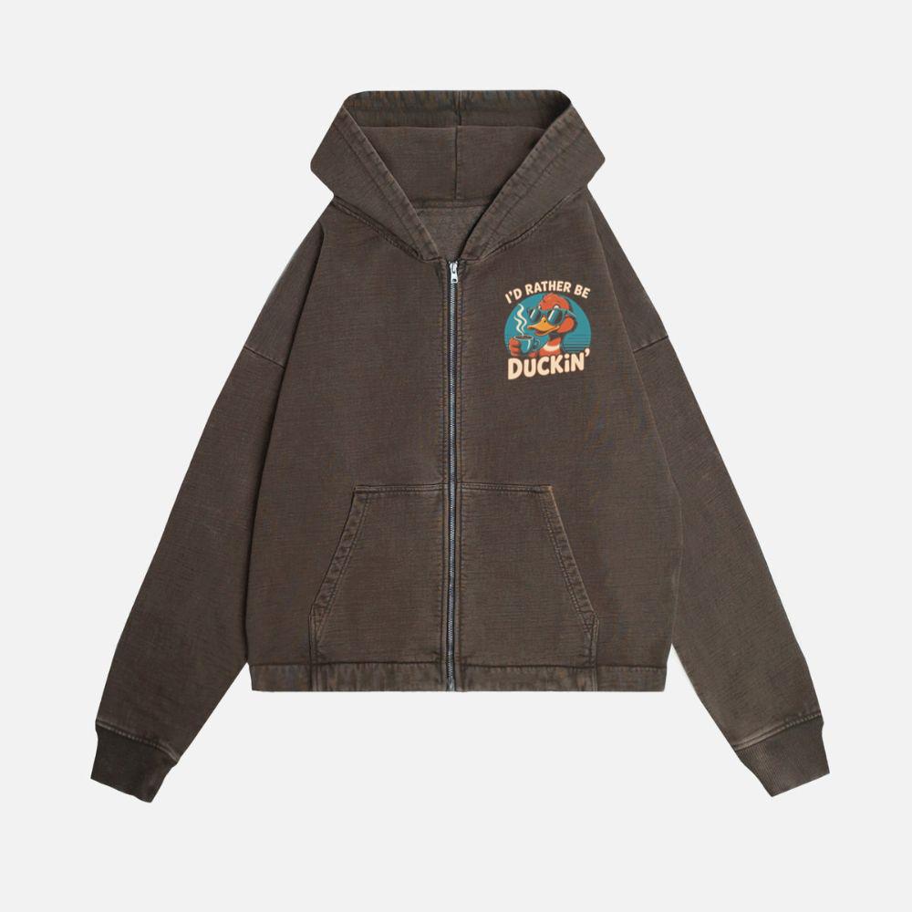 Id Rather Be Duckin Funny Duck Coffee Graphic Zip Hoodie
